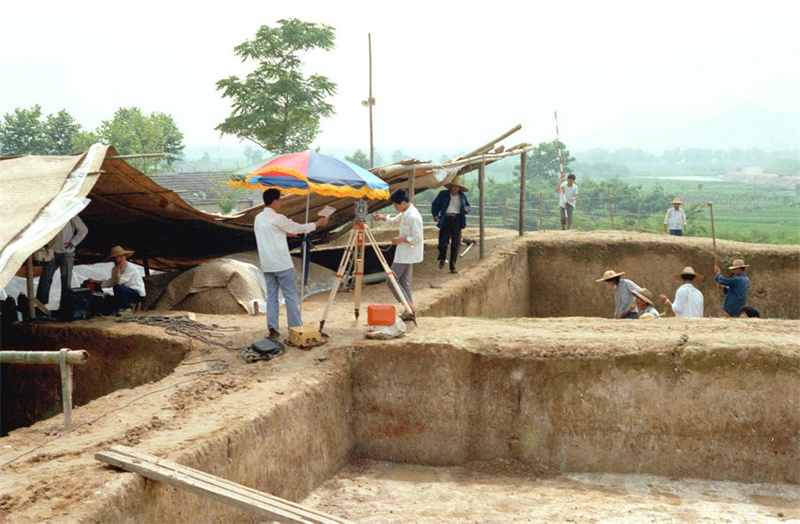 1986年11月拍摄的反山遗址考古现场。新华社记者 吴元柳 摄