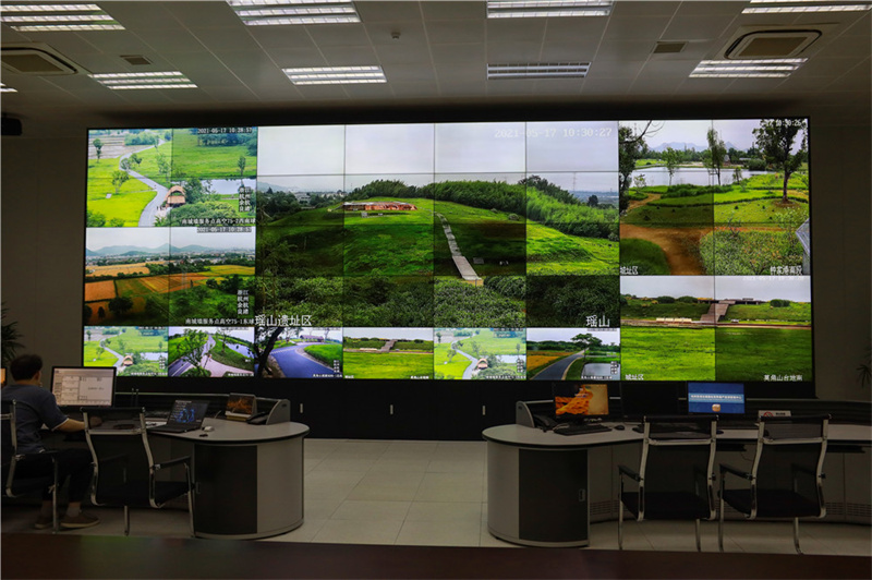 杭州良渚古城世界遗产监测管理中心内的监测预警系统大厅。受访者供图