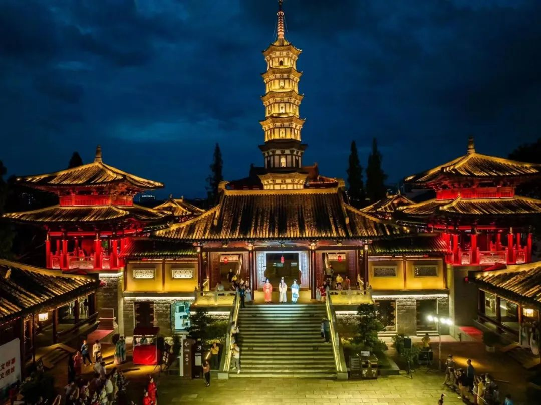 “昔我往矣,杨柳依依。今我来思,雨雪霏霏。”当诗经《采薇》的曲目响起,身着罗裙挥动水袖的古典舞女摇曳走出,温柔惊艳了整个水亭街区的夜色。