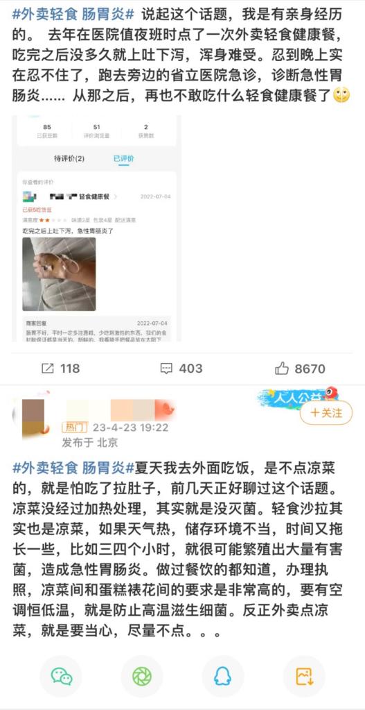 夏日来临,一些网友反映,自己在吃完轻食外卖后出现上吐下泻的情况。