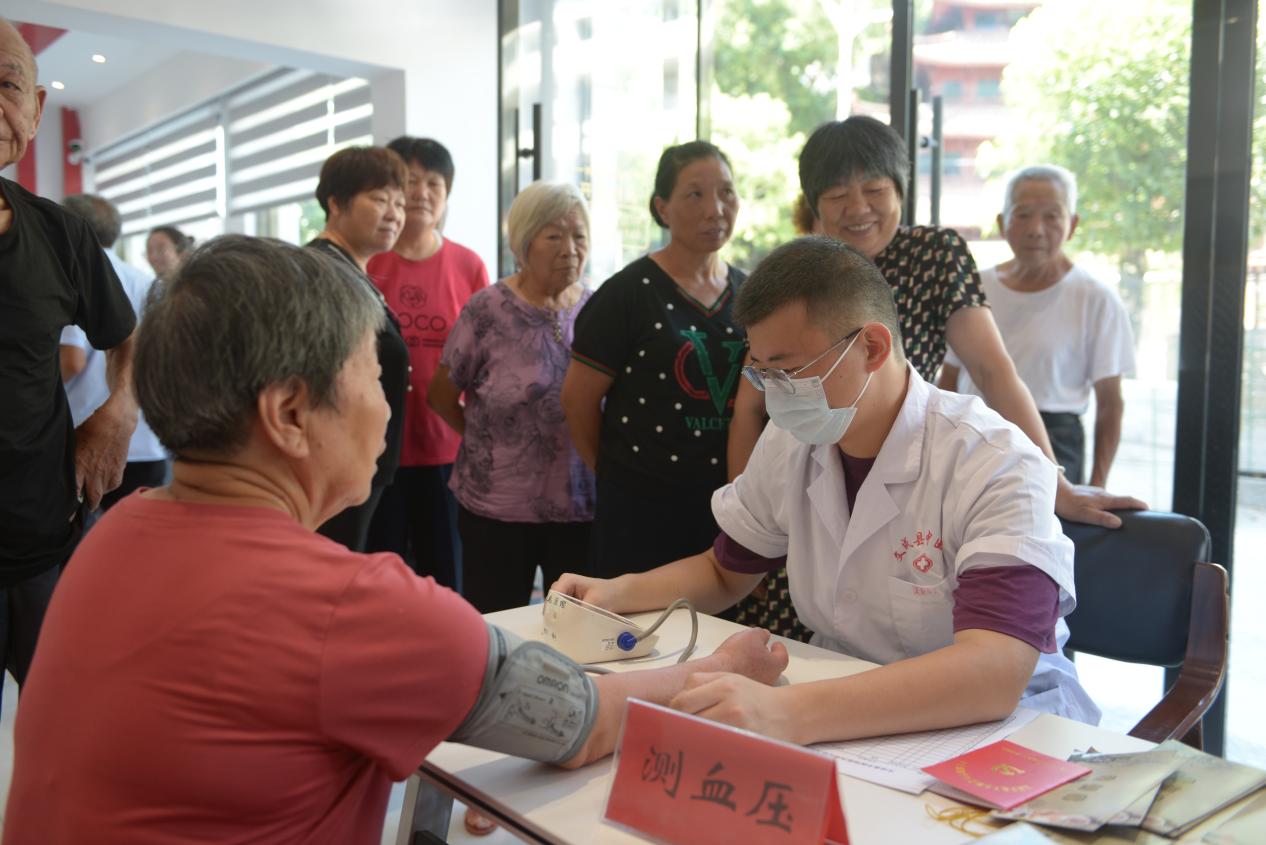 活动现场,前来问诊的村民络绎不绝。来自文成县中医院的医师们和温州医科大学国际教育学院新马可波罗暑期社会实践队志愿者们分工协作,为村民提供血压测量、穴位敷贴、针灸推拿、耳穴埋豆等医疗服务,并为前来的老年人提供健康服务咨询和针对性的防治建议。