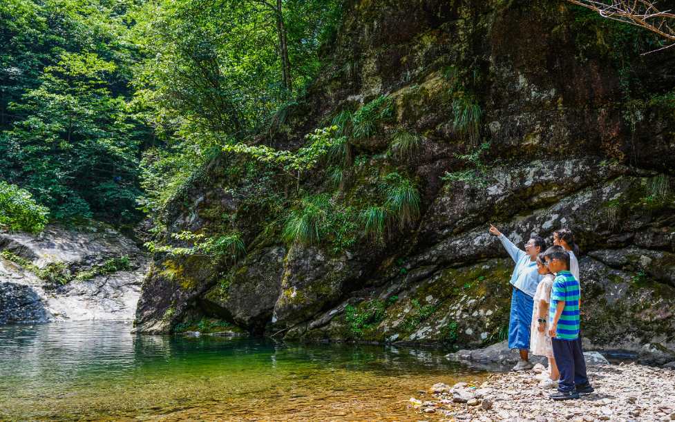 8月13日,在清凉峰野外博物馆,环保志愿者向小朋友讲解生态环保知识。新华社记者 徐昱 摄