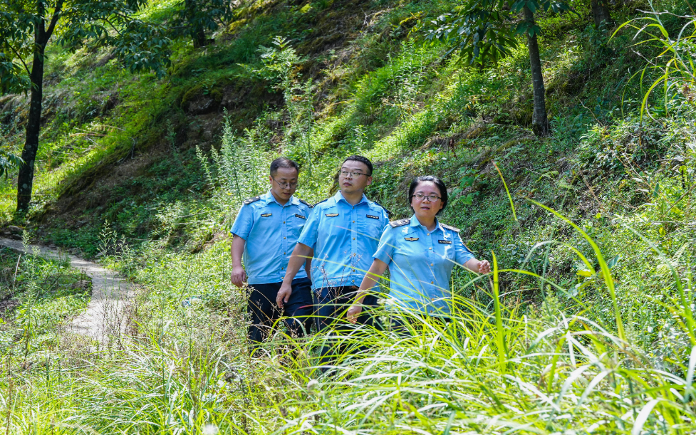 8月13日,执法人员在浙江清凉峰国家级自然保护区内巡查。新华社记者 徐昱 摄