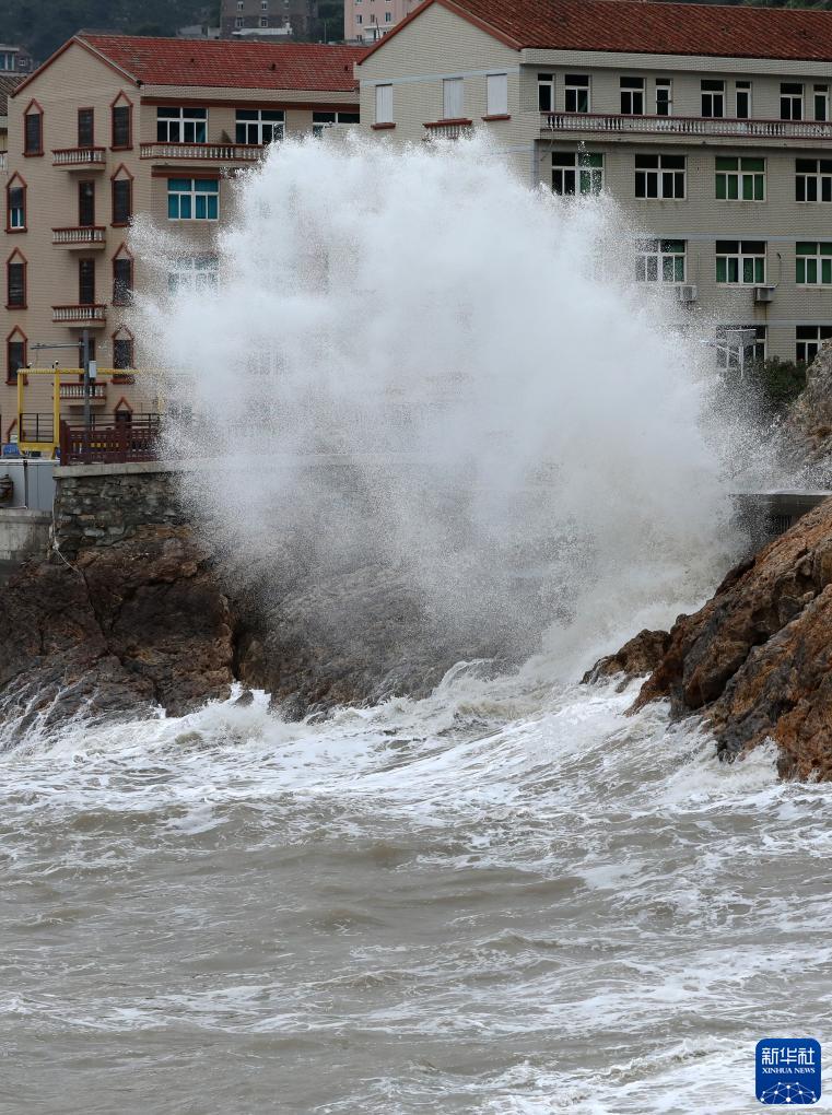 9月2日,浙江省温岭市石塘镇金沙滩海域掀起巨大浪花。