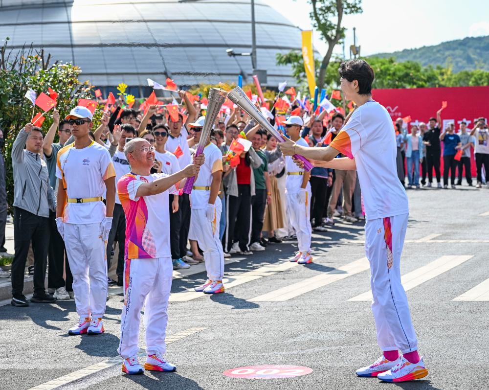 新华社宁波9月12日电(记者 林光耀)12日,杭州第19届亚运会火炬传递进入第五天,亚运“薪火”来到宁波。