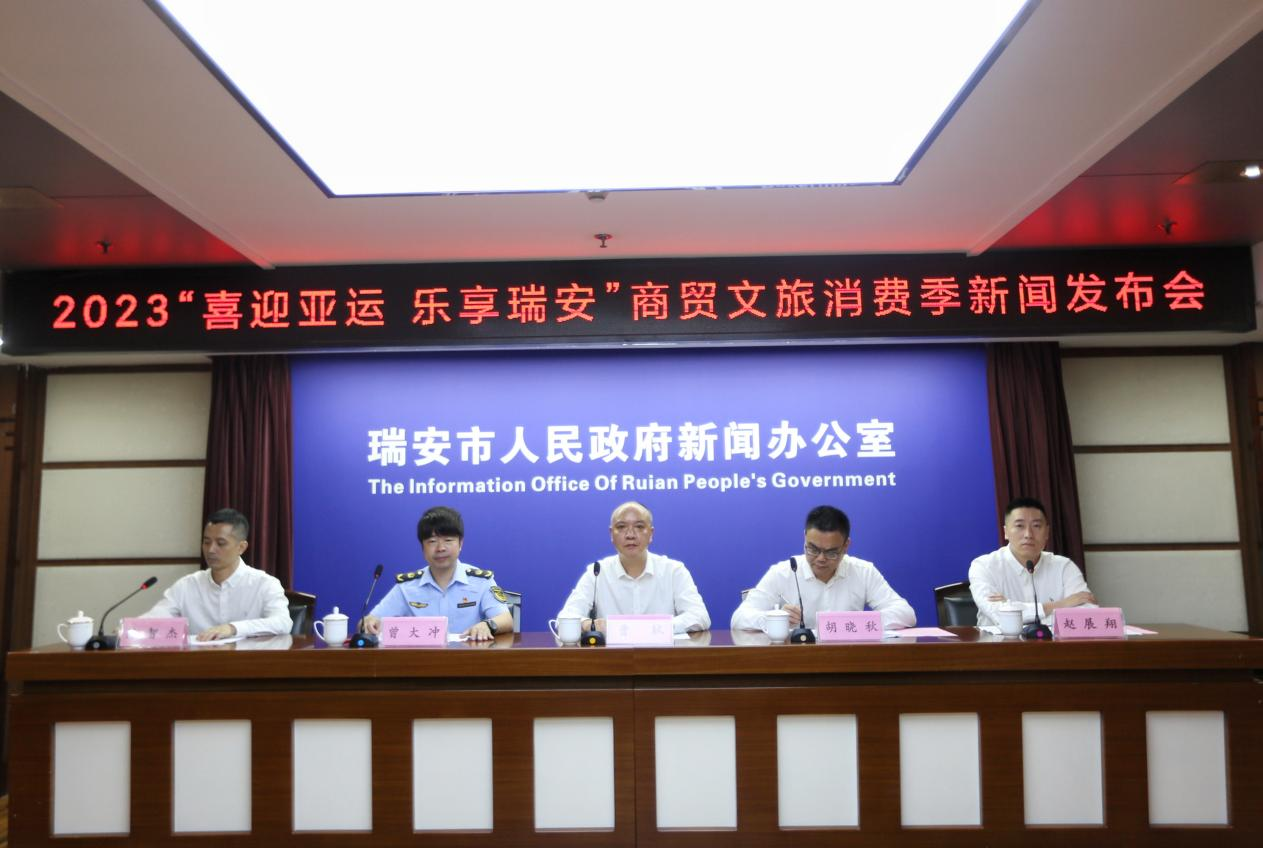 2023“喜迎亚运 乐享瑞安”商贸文旅消费季新闻发布会现场。瑞安市委宣传部供图