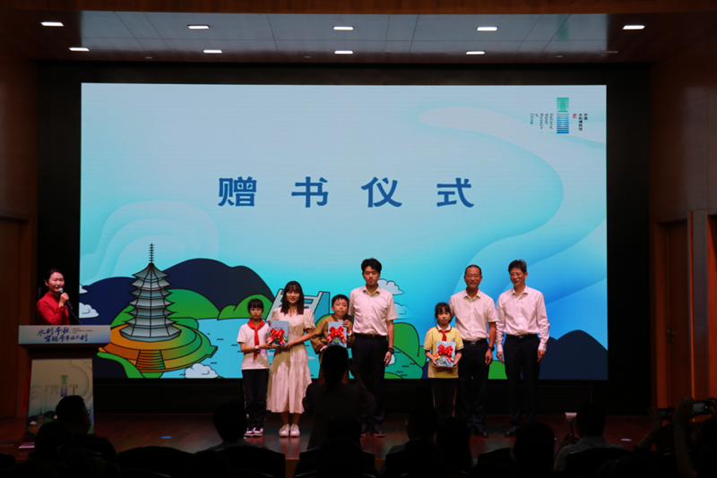 发布仪式后,中国水利博物馆馆长陈永明代表博物馆向杭州市钱塘区学林小学、萧山区崇文世纪城实验学校和萧山区万向小学三所学校师生代表进行赠书。此外,来自萧山区崇文世纪城实验学校的同学们带来了《大禹治水》情景剧表演。