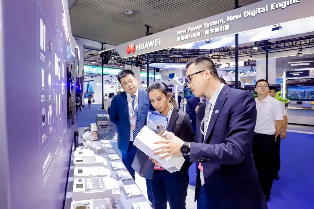 现场,一站式光伏系统解决方案、新型电力系统多场景解决方案、智慧环保配电网解决方案、综合能源管理平台等各具特色的数智低碳解决方案吸引了关注。