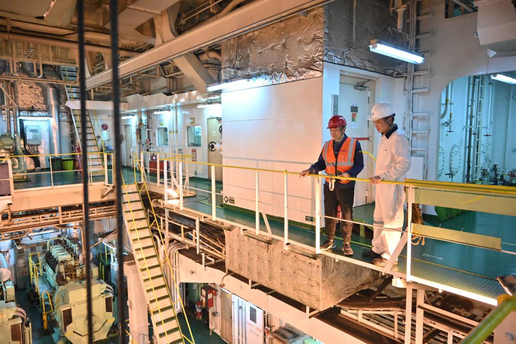 国网温州市洞头区供电公司技术人员了解华达运号船上的用电设备。新华网发 国网温州市洞头区供电公司供图