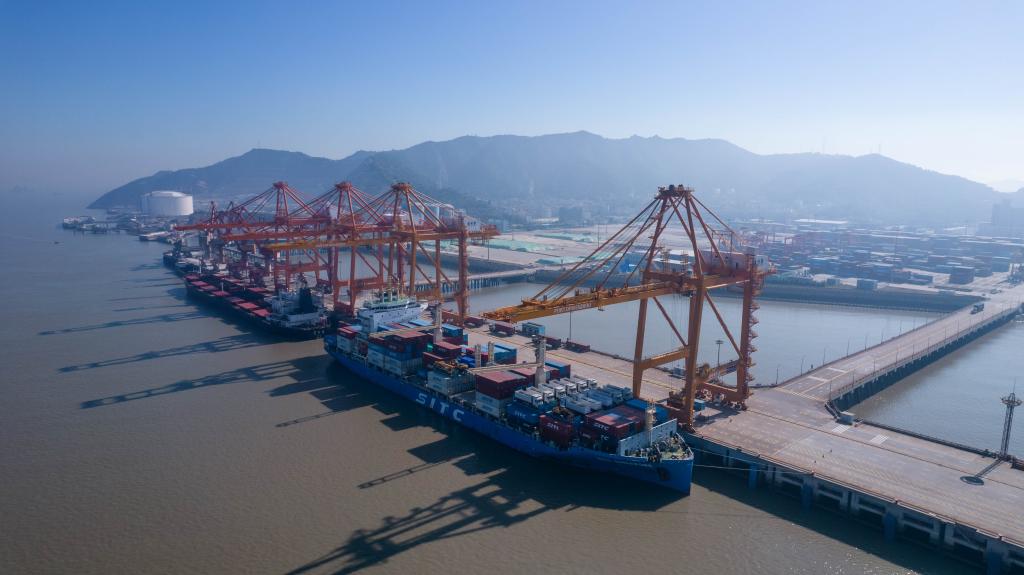 走进状元岙港区,便能看到集装箱卡车进进出出,多台桥吊同时作业,将一批批外贸货物装运上船的场景。作为温州港三大港区之一,状元岙港区是温州港集装箱业务核心港区,集装箱吞吐量占比五成以上,是温州对外经贸的前沿阵地。