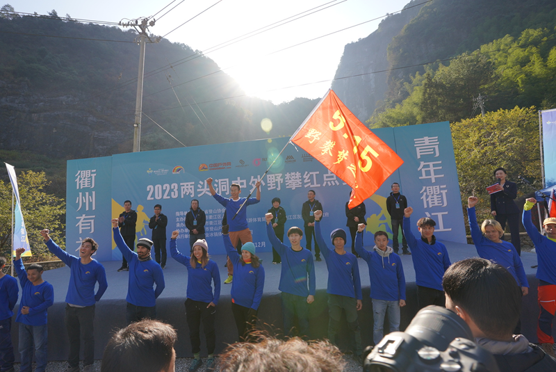 12月2日,2023两头洞中外野攀红点赛在浙江省衢州市衢江区华东第一攀岩基地开幕。本次赛事总规模约100人,其中特邀国际选手4名,中国野攀5.14选手10名组成“5.15野攀梦之队”。