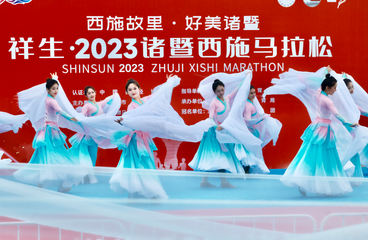 诸暨西施马拉松让参赛者见证了城市如电影卷轴一样舒展开来:枫桥经验陈列馆,一组组照片、文字、视频,充分展示“枫桥经验”多年来一脉相承的发展历程和与时俱进的时代价值;大唐街道,一台台智能袜机、一个个数字化车间,一家家数字化示范企业,正让诸暨袜子走向世界;山下湖镇,通过线下+线上,这里的珠宝城市场已辐射美国、日本、俄罗斯及东南亚等60多个国家和地区,还有西施故里景区场场爆满的璀璨笙歌,有浣纱江夜游的身临其境……不仅如此,诸暨的“宝藏地”还有很多,赵家榧树茂盛、应店街银杏成林、安华红糖甜蜜、店口炒货飘香、姚江粮食满仓……穿城而过的浦阳江水波光粼粼,一步一景之间,马拉松带来无数目光聚焦诸暨,成为“好向导、好导游”。
