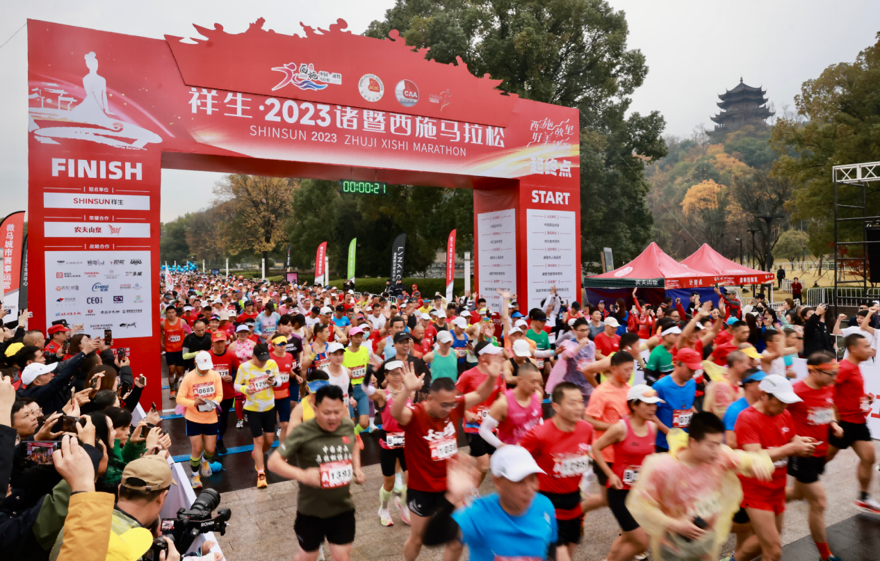 12月10日清晨,伴随一声响亮的鸣笛,2023诸暨西施马拉松在浙江省诸暨市开跑,15000名来自不同国家和地区的跑者如翔鸿般冲出拱门,以奔跑的方式体验这座独具魅力的“好美之城”。