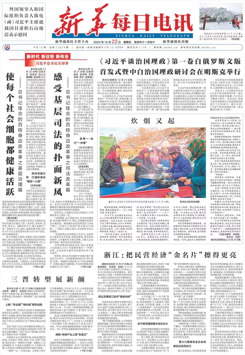 2023年企业经营怎么样、当前经济的“形”与“势”怎么看、2024年怎么干……与会浙江民营企业家表示,坚定信心决心、秉持四千精神,以“时不我待”的精气神充分发挥“生力军”作用。