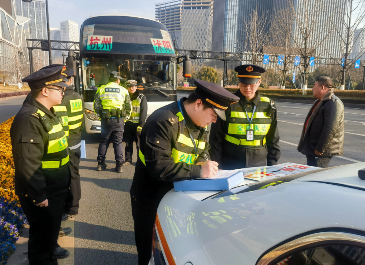 1月26日,为期40天的2024年春运正式拉开帷幕。为加强春运道路运输市场监管,做好春运期间的客运市场秩序维护及安全生产工作,保障人民群众平安出行,浙江省杭州市临平区交通运输局开展“春运首日全员执法日”行动,护航春运回家路。