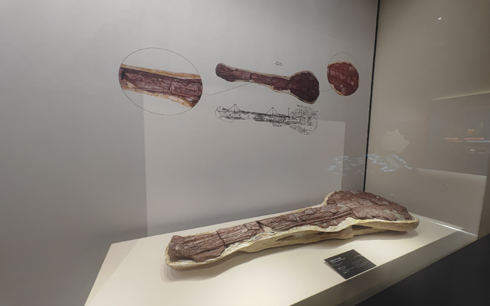 图为在浙江省博物馆之江馆区展出的缙云甲龙尾锤化石。新华社记者 冯源 摄