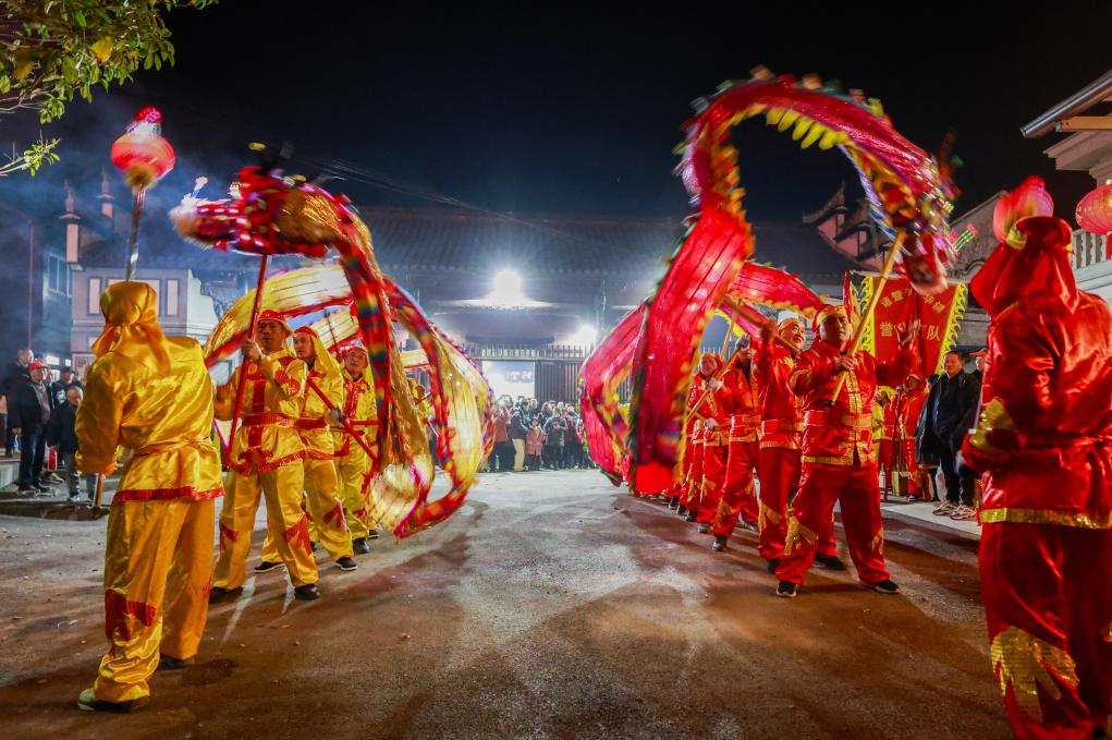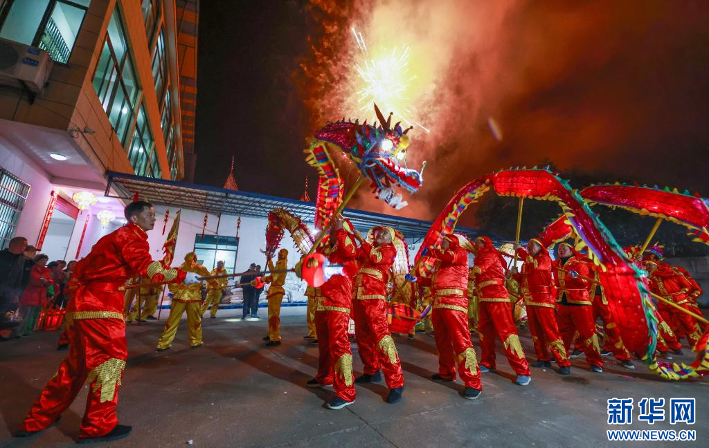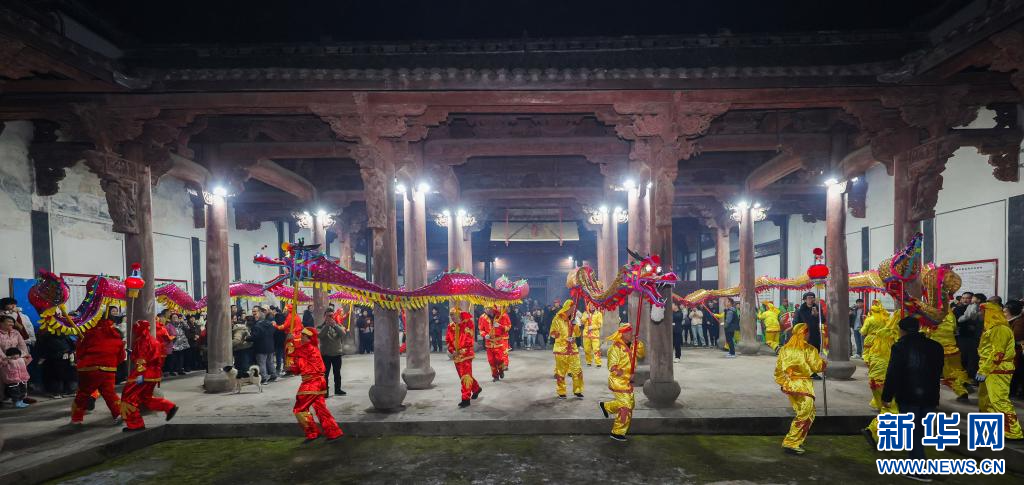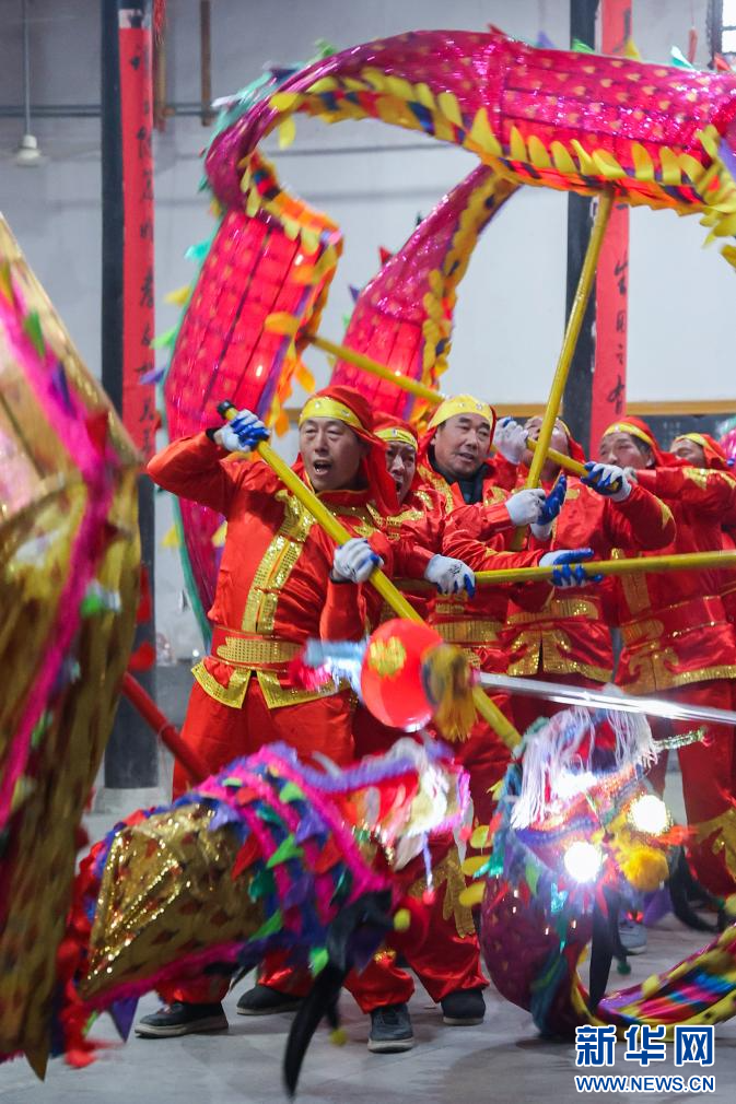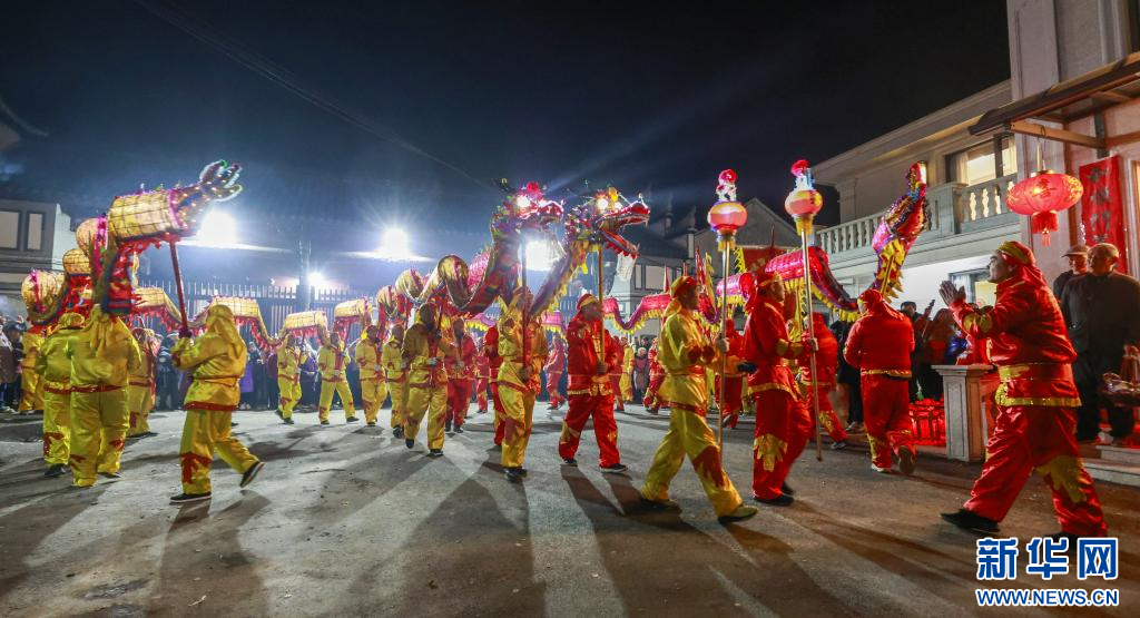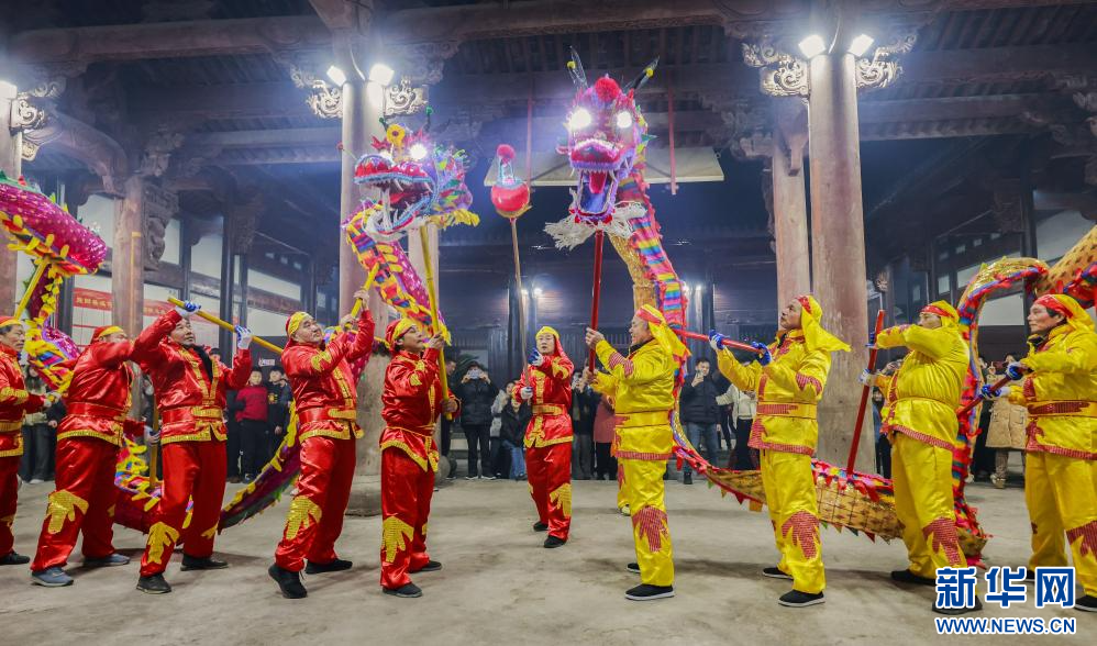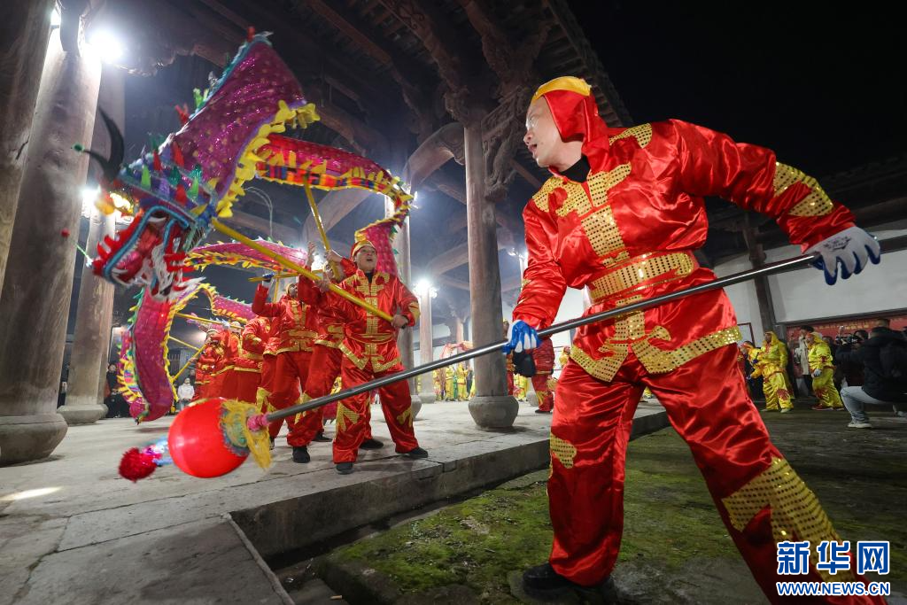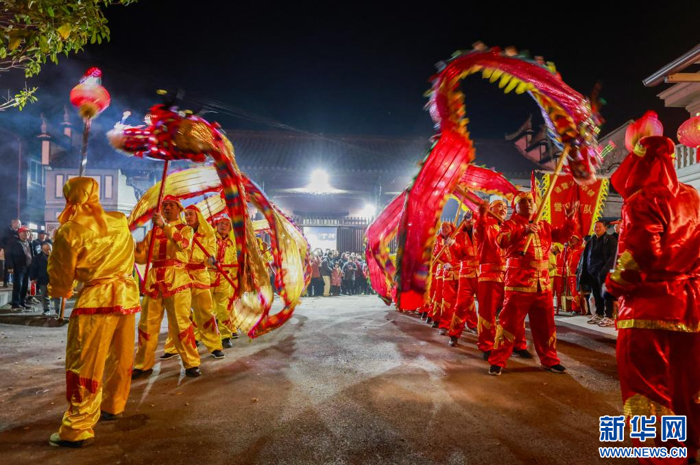 2月10日,浙江省诸暨市安华镇矿亭村村民进行舞龙表演。新华社记者 徐昱 摄