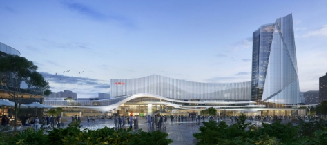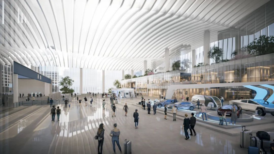 杭州钱塘枢纽正立面效果图。