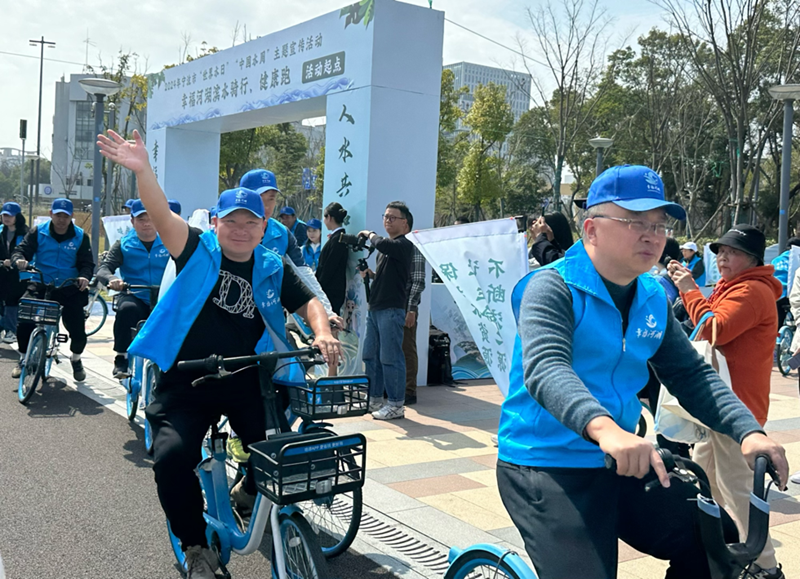启动仪式结束后,由亚运金牌得主朱自强带领的滨江骑行队和慢跑队伍一同出发,沿着姚江水岸领略了幸福河湖的独特魅力。(邱巧怡 陈飒/文 邱巧怡 黄欢/图)