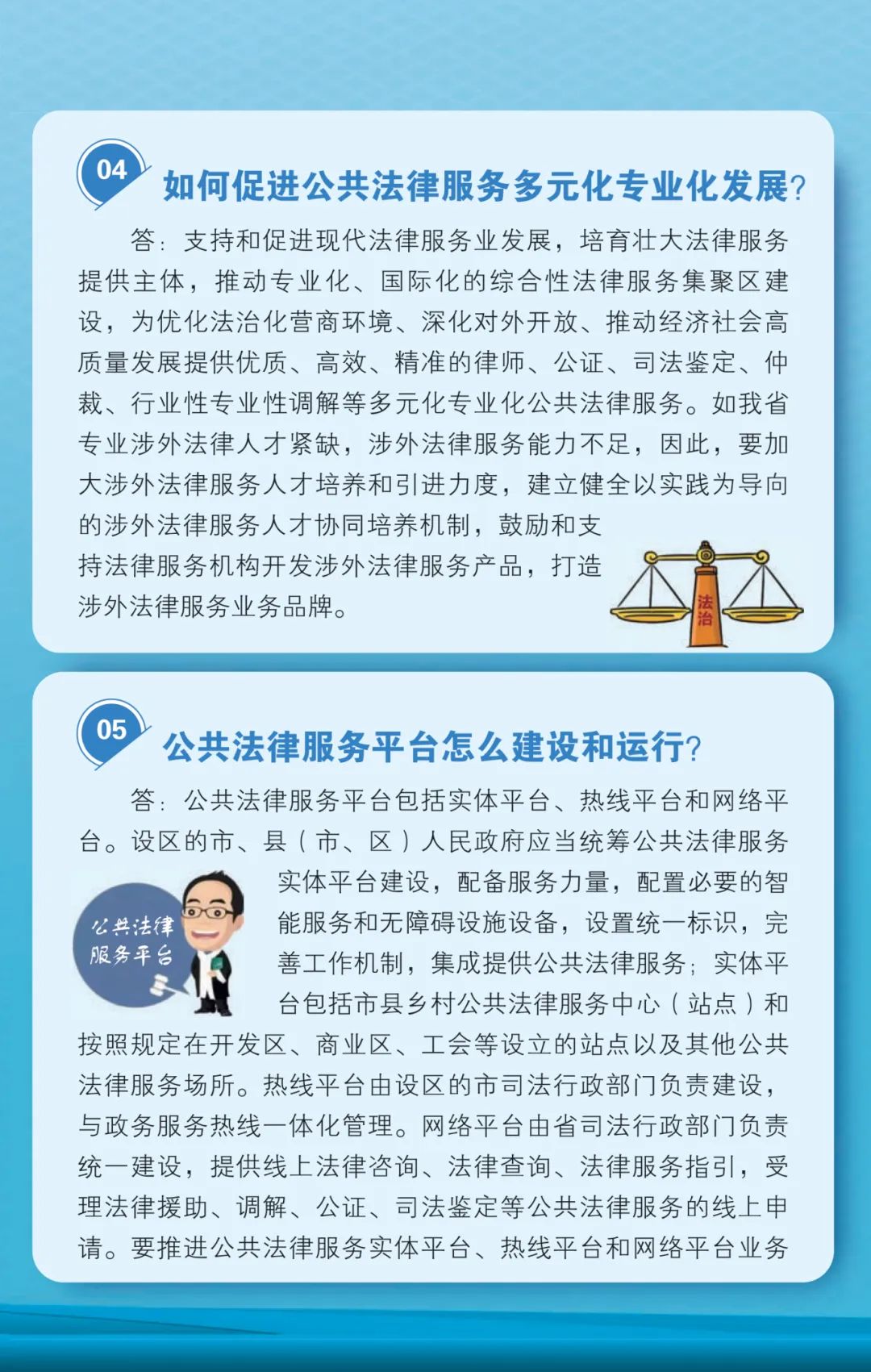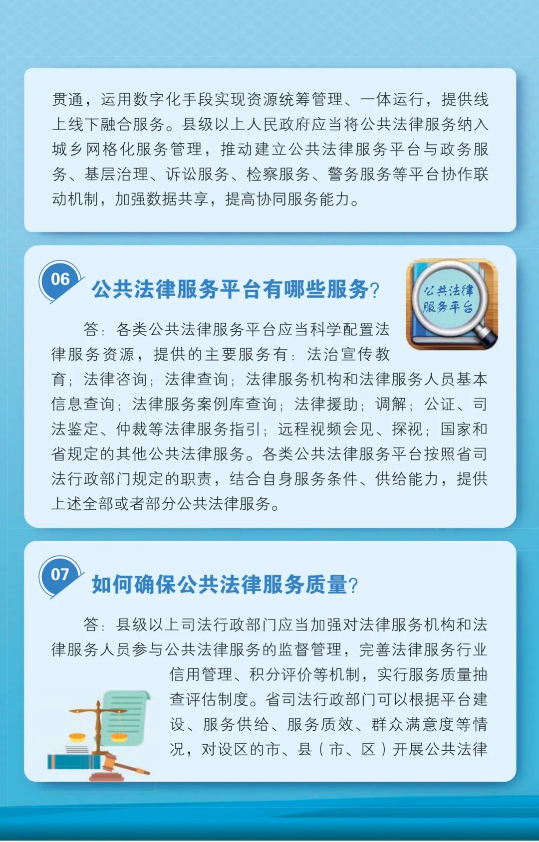 《条例》主要从基本公共法律服务、多元化专业化公共法律服务、公共法律服务平台、保障与监督等方面作了规定。