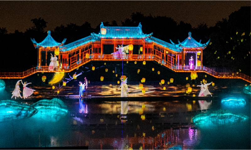 《今夕共西溪》沉浸式“夜秀”演出现场。(杭州市文化广电和旅游局供图)新华网 发