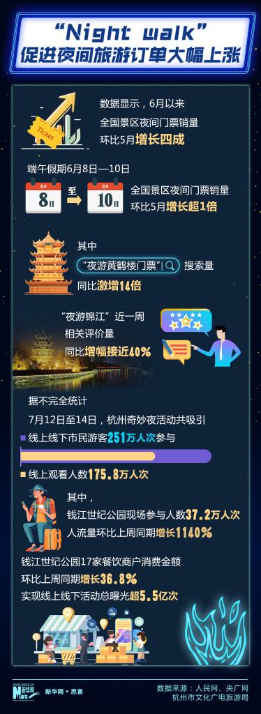 新华网北京7月19日电 随着入夏时日渐长,气温升高,全国多地都在打造“Night Walk”(夜间漫步)夜市、夜游项目,多个景区及公园延长开放时间,进一步扩展夜间消费场景,也为“夜经济”的发展注入了强劲动力。