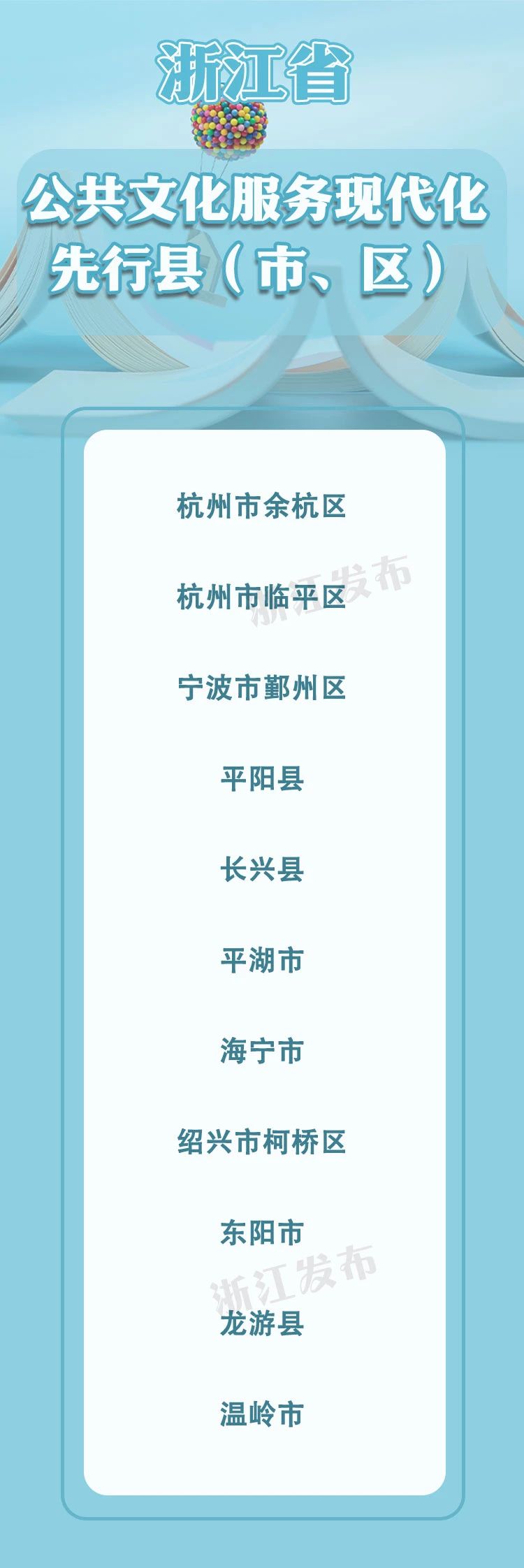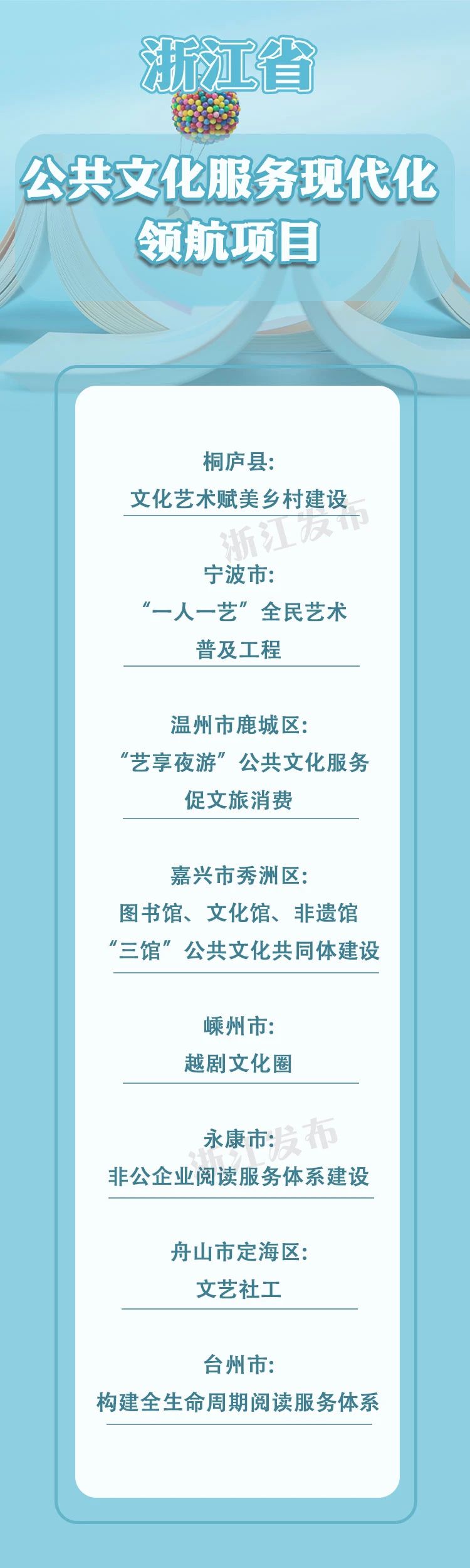 日前,省政府印发《关于命名浙江省公共文化服务现代化先行县(市、区)和领航项目的通知》,决定命名杭州市余杭区等11个县(市、区)为浙江省公共文化服务现代化先行县(市、区),命名桐庐县文化艺术赋美乡村建设等8个项目为浙江省公共文化服务现代化领航项目。