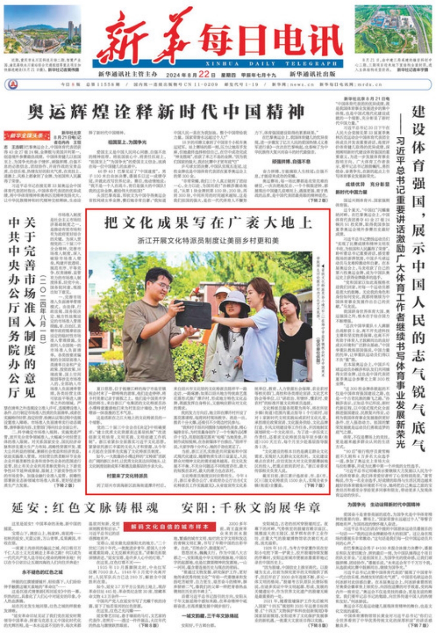 党的二十届三中全会在《决定》中明确要求:“建立优质文化资源直达基层机制”“改进创新文明培育、文明实践、文明创建工作机制”。浙江省紧扣全面落实习近平文化思想,紧紧依托浙江丰富的文化人才和资源,从今年4月起在全国率先实施了文化特派员制度。