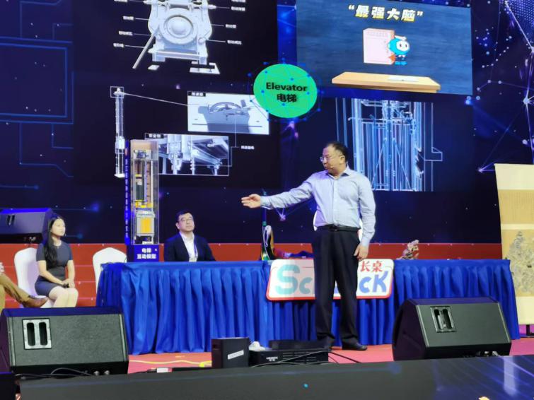浙江省特科院王学斌副院长受邀在大会上作交流分享。王学斌副院长通过展示电梯教学模型,深入浅出地讲解了电梯工作原理和零部件作用,普及了乘坐电梯行为规范以及电梯发生紧急情况时的正确应对技巧。