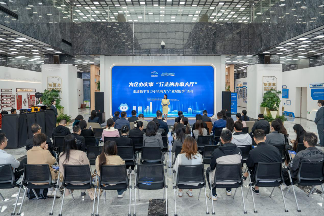近日,为企办实事“行走的办事大厅”活动走进浙江省杭州市临平区算力小镇,为“产业赋能季”赋能添彩。杭州市审管办及临平区10余个相关区级部门、10余家企业代表共同参加。