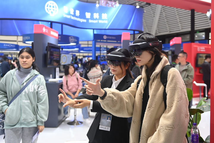 11月19日,在2024年世界互联网大会“互联网之光”博览会上,观众在数字科技创新成果展台参观。新华社记者黄宗治 摄