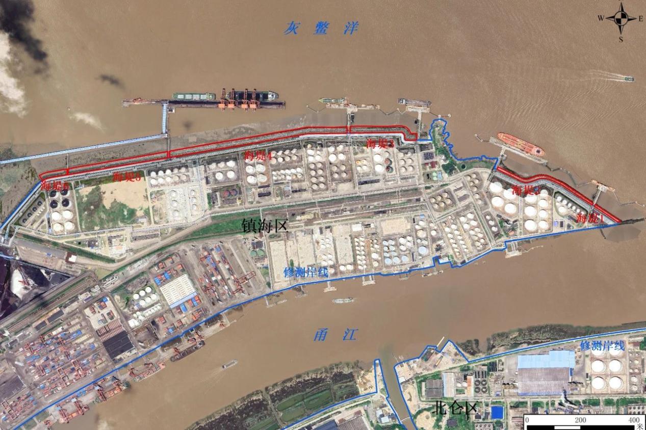 作为《浙江省海塘安澜千亿工程建设规划》的一项重要工程,以及浙江省重要民生实事工程之一,镇海港区海塘安澜工程主要围绕海塘提标加固展开。工程于2023年9月8日正式开工,总投资8168万元,核心建设内容包括5万吨级化工泊位防浪堤的加固以及围海造地工程围堤建设。海塘堤线东起甬江出海口,西至镇海电厂三号灰库堤,全长2260米,分为两段,由游山隔开。两段海塘分别长520米和1740米,形成一道坚实的防御壁垒。
