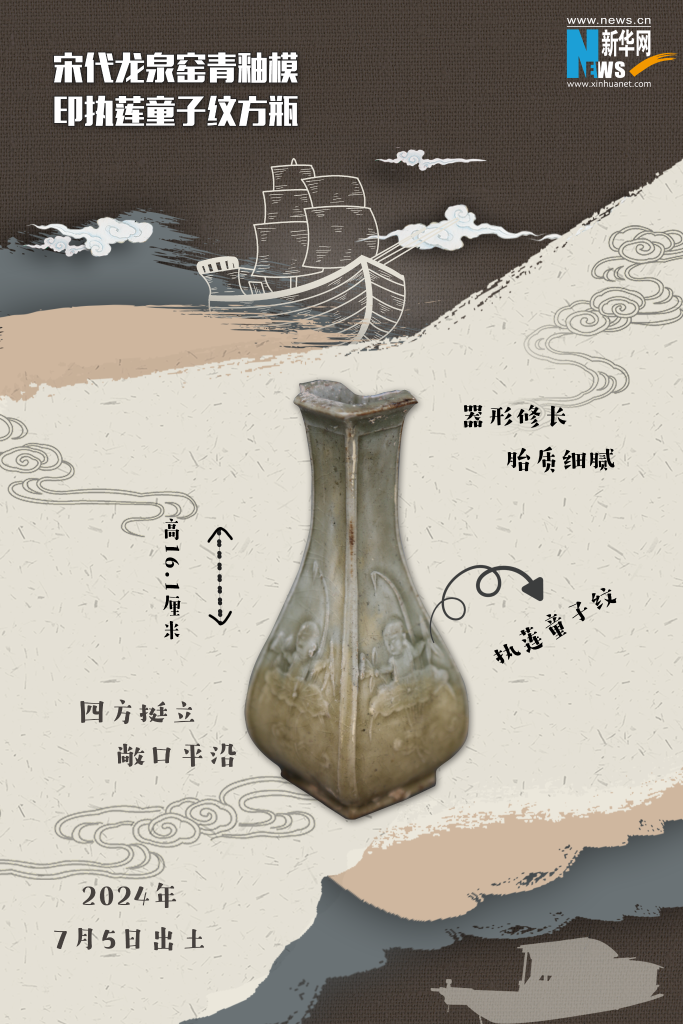 靠近南宋石砌江岸的地层中出土的龙泉窑青瓷方瓶