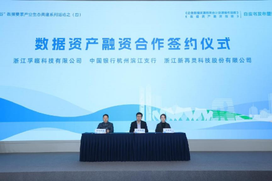 当天还举行了合作签约仪式和主题分享交流。中国银行滨江支行与新再灵科技、孚临科技公司就数据资产授信合作进行数据资产授信合作签约。中国银行滨江支行基于杭州高新区(滨江)高新技术企业集聚的特点,制定了“数易贷”专属融资方案。