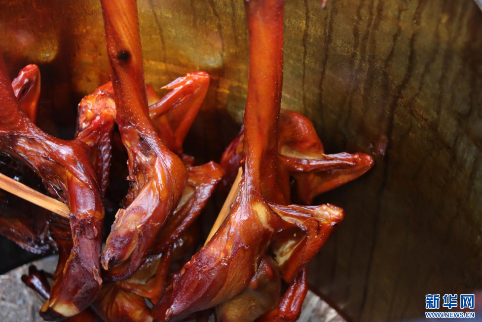 年关将近,叶林国夫妇用自家林下鸡制作的“古法熏鸡”卖得红火,刚开晒就已经被预定了4千余只,夫妇俩预计,大概一个多月就能卖完家里的一万多只鸡。