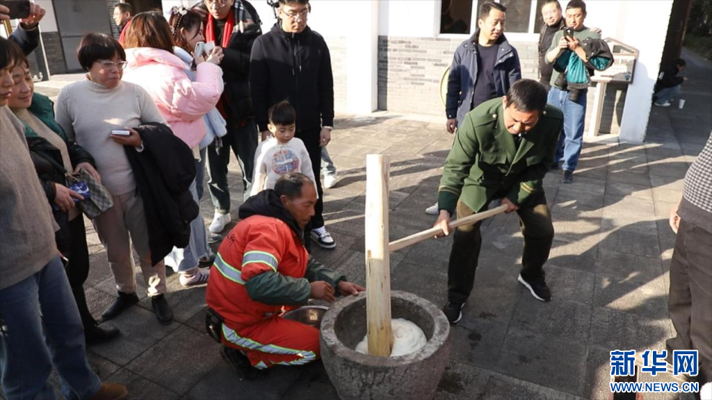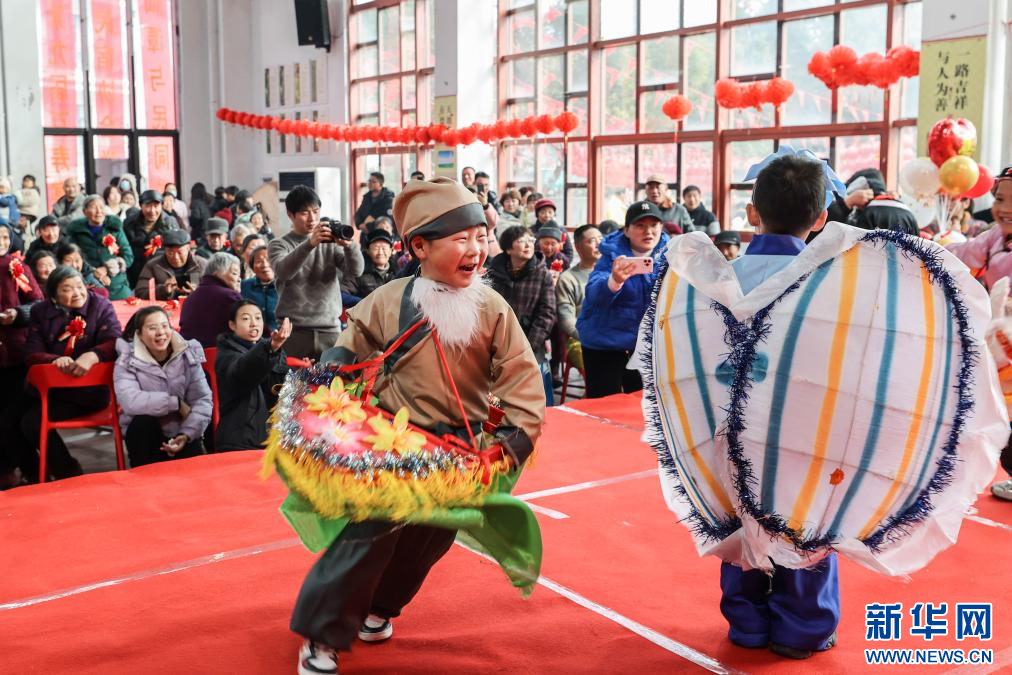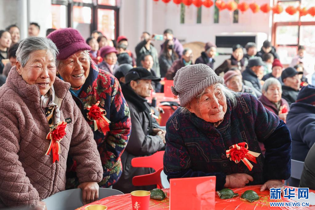 仙潭村百寿宴现场开展包青团、打年糕、做方糕、写春联等活动,舞龙队、歌舞队等文艺团队也分别携节目登场。新华网发 姚海翔 摄