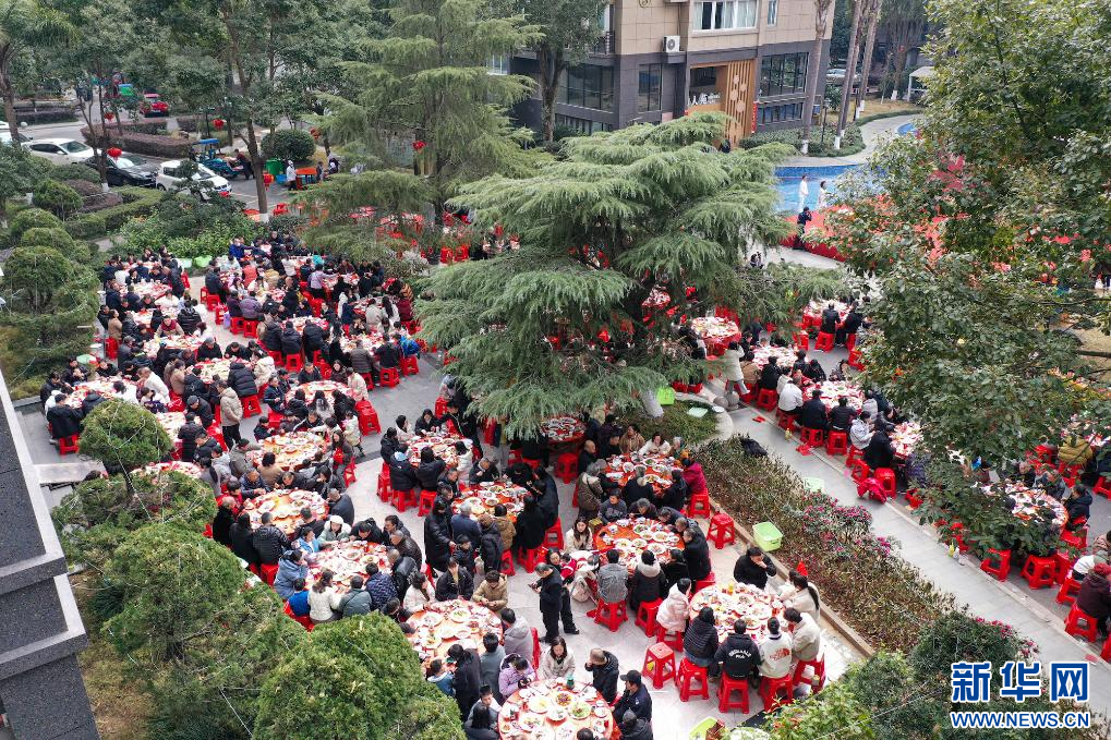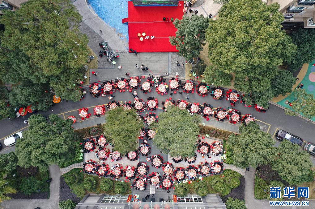 1月18日,一场“年味儿”十足的百家宴在浙江温州瑞安市安阳街道新江南人家小区热闹开席。新华网发 瑞安市融媒体中心供图