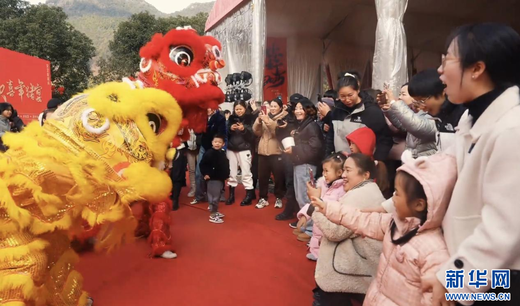 近日,在浙江省台州市黄岩区北洋镇五尖山村,一场千人共享的年猪宴拉开新春的序幕。近千名游客和村民们欢聚一堂,感受乡村里浓厚的年味。新华网发 台州市新闻传媒中心(集团)供图