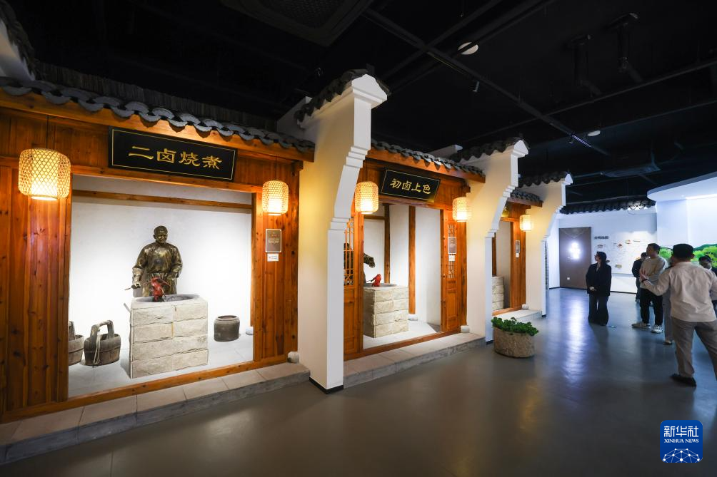 4月16日,在位于嘉兴南湖区湘家荡农业加工园的老字号企业嘉兴文虎酱鸭股份有限公司内的文虎酱鸭博物馆,游客在了解嘉兴传统酱鸭的历史和制作工艺。