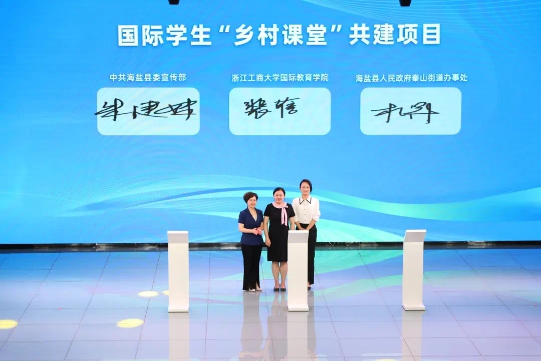 2024年,海盐县与浙江工商大学国际教育学院达成合作协议,共同建设国际学生国情教育实践基地与乡村课堂项目。此后,来自浙江工商大学的国际学生不断走进海盐,在最接地气的“乡村课堂”里,了解滚灯、扎染等海盐优秀文化,实现“文化对接”,而非遗滚灯舞《华灯映九州》正是“国际学生‘乡村课堂’”项目的阶段性成果之一。