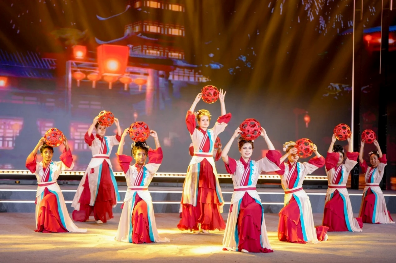 据了解,这个精彩节目的背后,是18名来自不同国家的浙江工商大学学生的共同努力。他们分别来自俄罗斯、泰国、孟加拉、斯里兰卡、土库曼斯坦等国家,前期曾多次前往海盐国遗滚灯馆参观体验,深入探寻海盐滚灯的魅力。最终,他们大胆创新,选择将充满力量感的海盐滚灯与柔美的中国舞“破圈”融合,使节目呈现出独特的艺术效果。