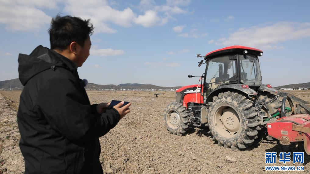 周理达用手机操控无人驾驶拖拉机。新华网发 受访者供图