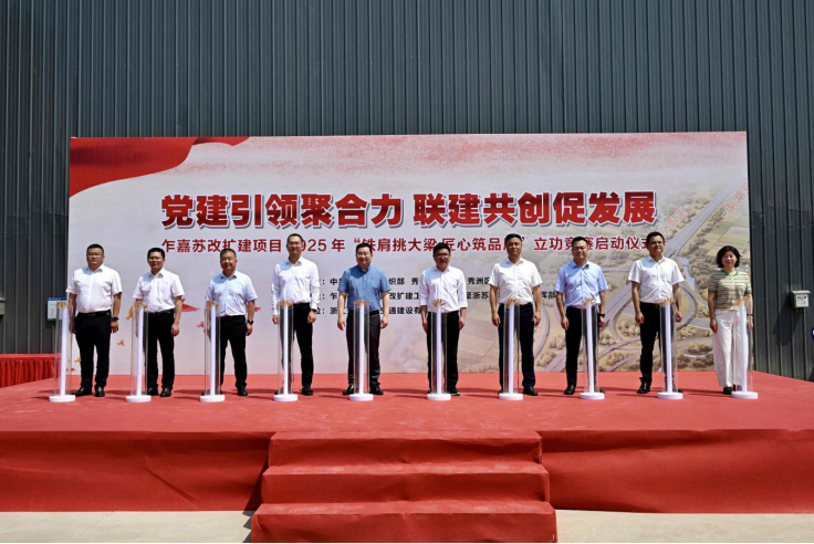 近日,“党建引领聚合力 联建共创促发展”乍嘉苏改扩建项目2025年“铁肩挑大梁 匠心筑品质”立功竞赛启动仪式在浙江交通集团下属交工金筑承建的乍嘉苏改扩建1标施工现场举行。