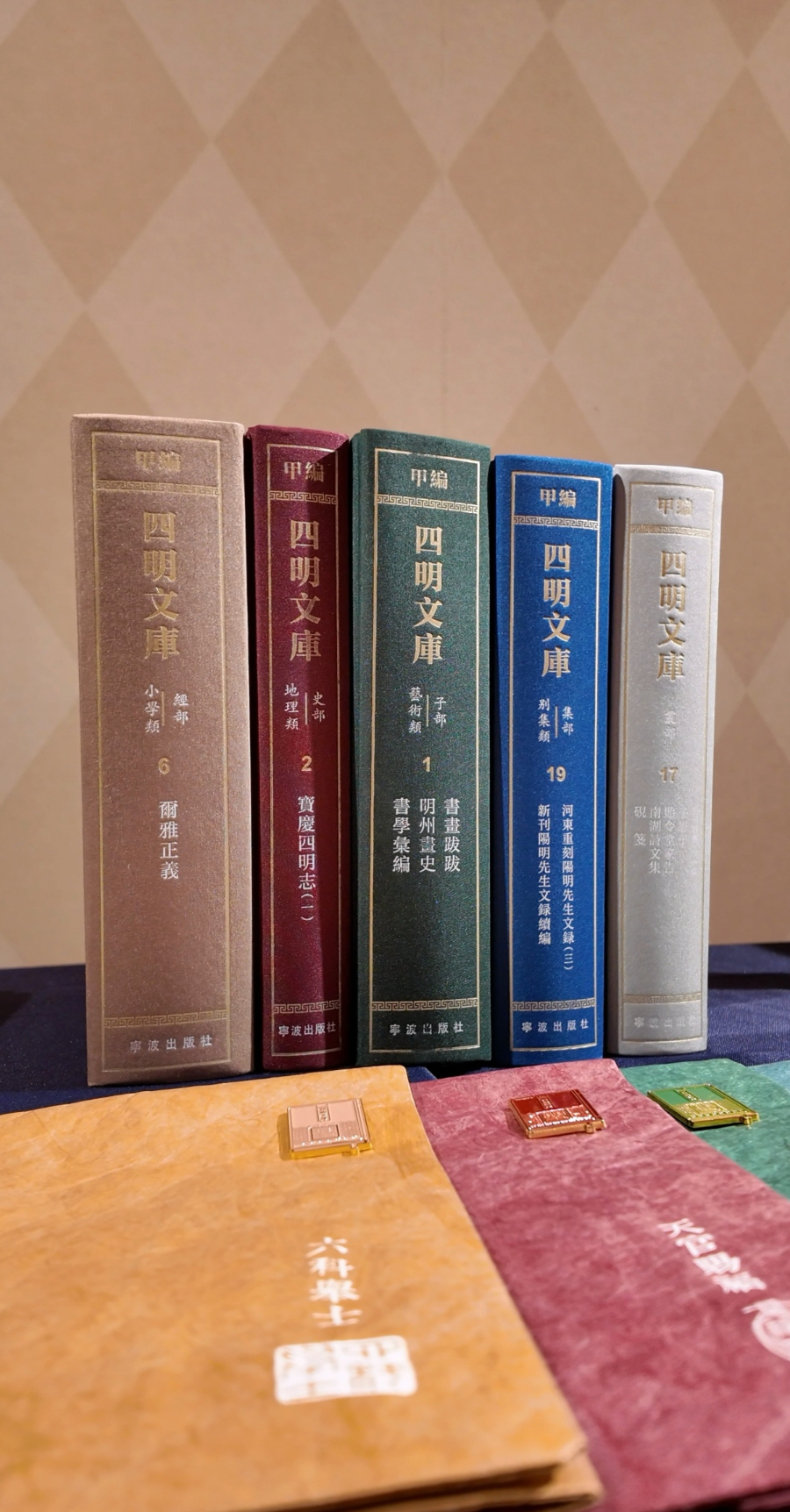 7月13日下午,交流对话现场展示的《四明文库》。记者潘雯婕 摄