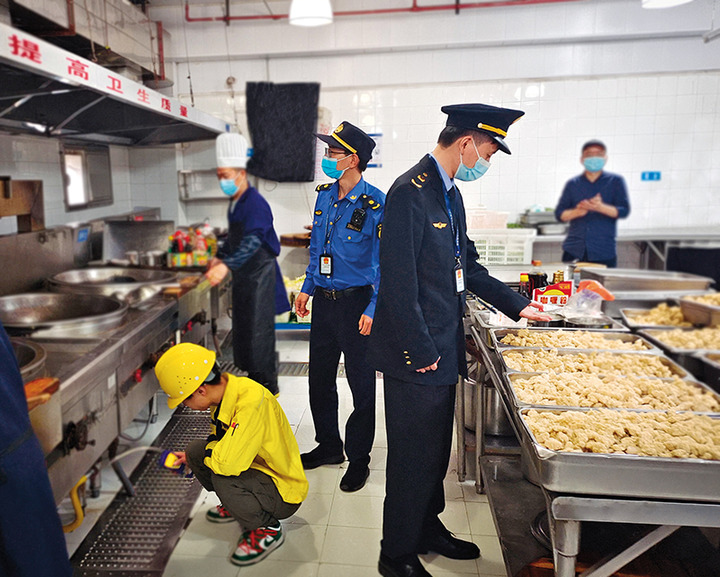 浙江省宁波市海曙区市场监管、综合执法下沉执法人员以高桥镇人民政府名义对高桥镇中心小学食堂针对燃气安全赋权事项开展行政检查(2023 年 6 月摄) 受访者供图