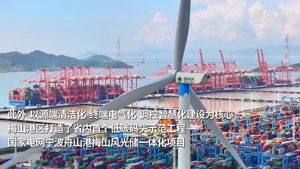 此外,以源端清洁化、终端电气化、调控智慧化建设为核心,梅山港区打造了省内首个低碳码头示范工程——国家电网宁波舟山港梅山风光储一体化项目。
