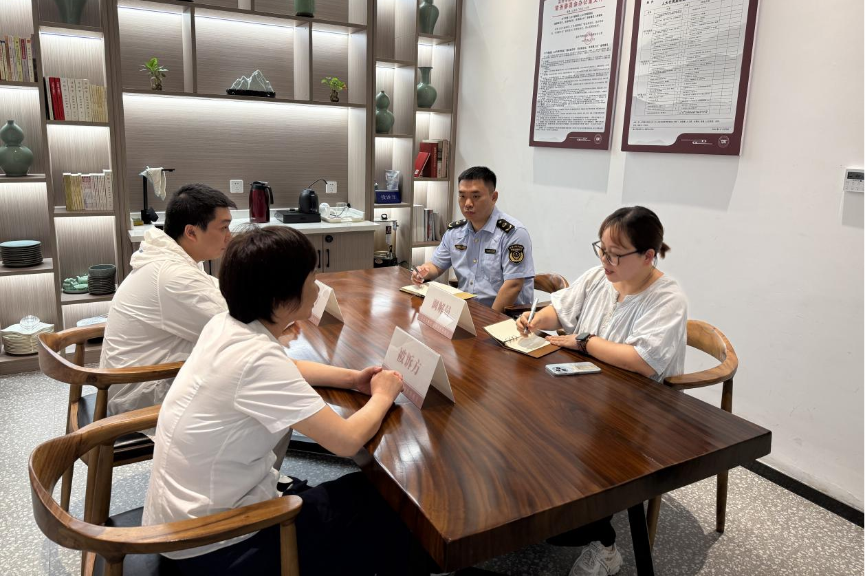 在温州市鹿城区五马街道人大代表联络站消费维权联络点,当值人大代表、社区负责人、市场监管人员共同调解消费纠纷。温州市鹿城区消费者权益保护委员会供图