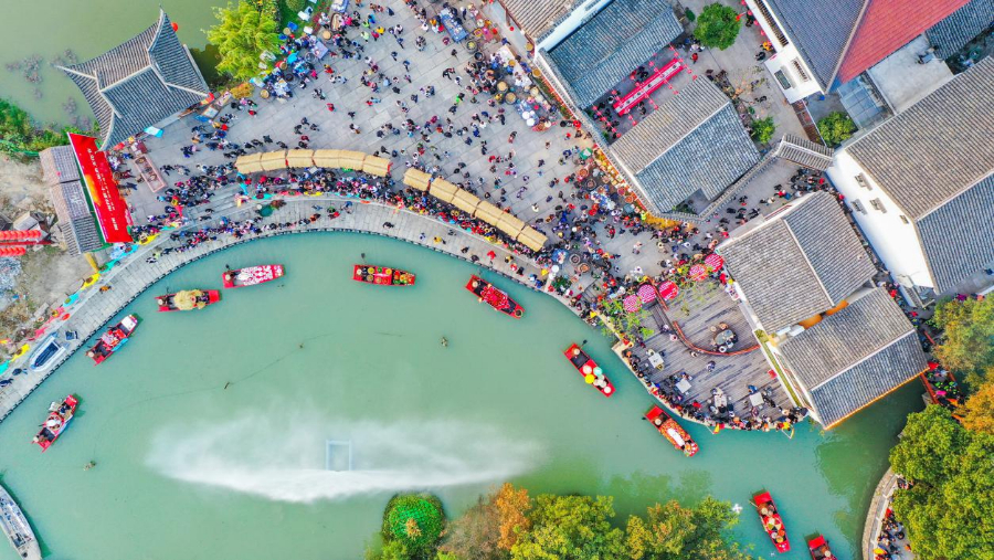 2024年1月5日,荻港村传统鱼文化节现场。新华网发(陆志鹏摄)