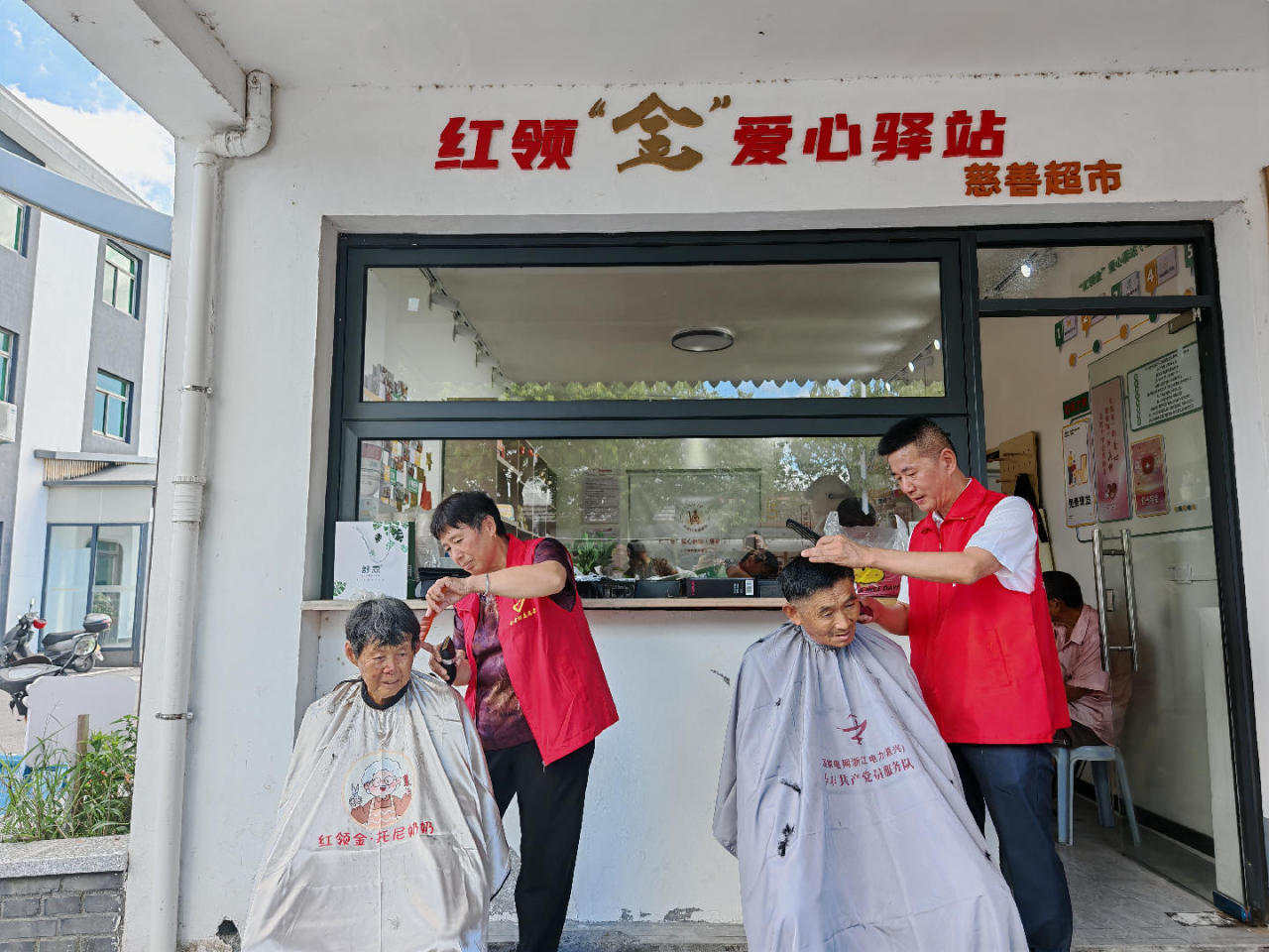74岁的商奶奶坐在金章村红领“金”爱心驿站里,“托尼奶奶”志愿者正耐心地为她理发。“剪短点,天热好打理。”这些经过专业培训的银发志愿者,让村里老人实现了理发“不出村、不花钱”。