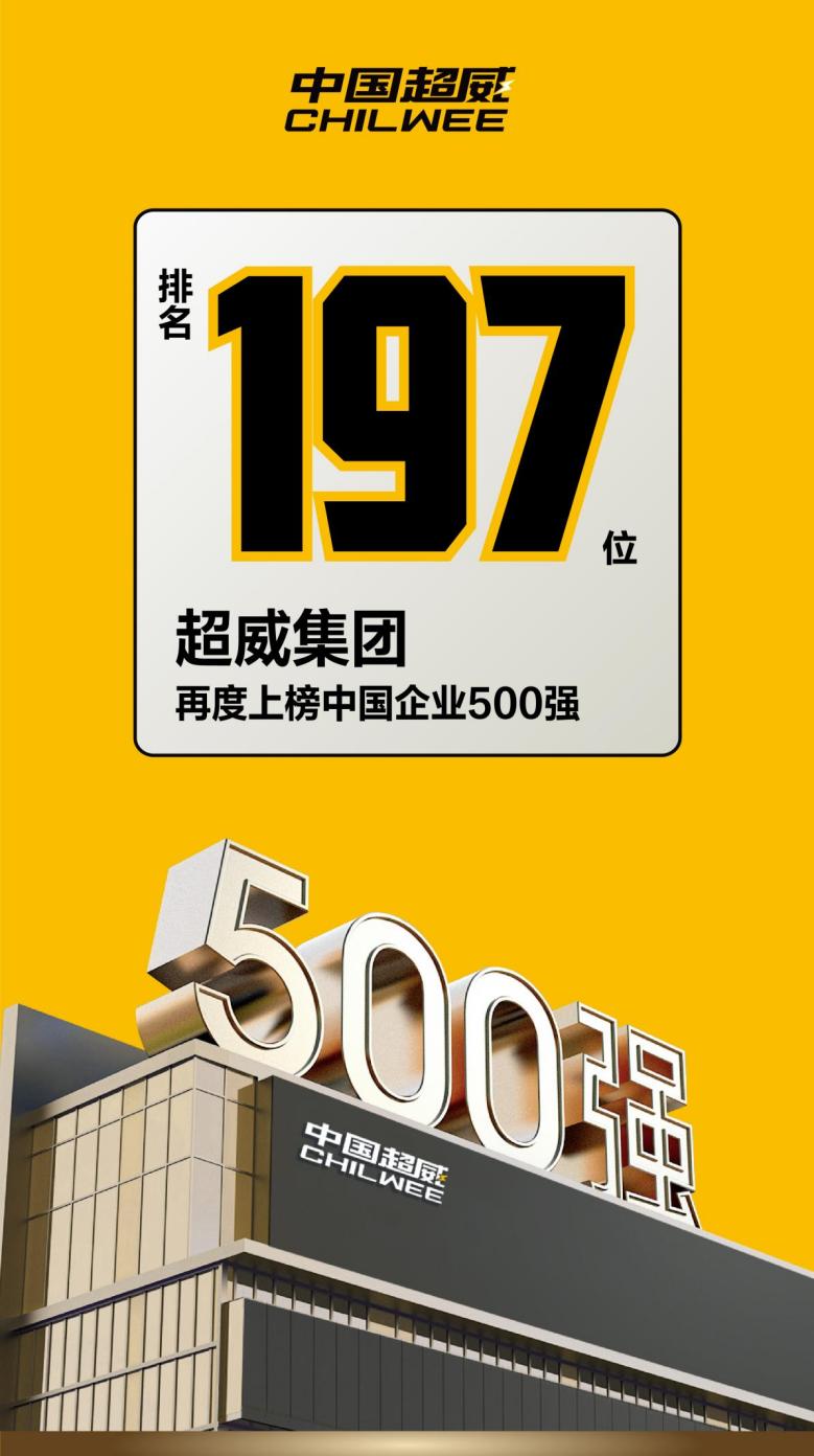 近日,中国企业联合会、中国企业家协会发布“2025中国企业500强”榜单,超威集团再度上榜,位列中国企业500强第197位,同时位列中国战略性新兴产业领军企业100强第34位。